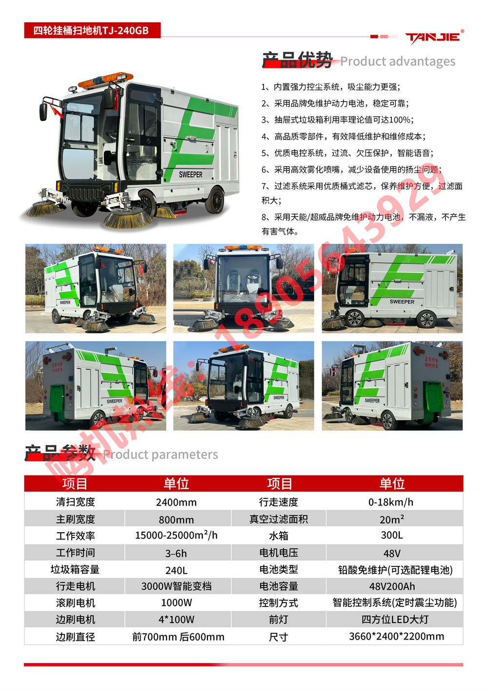 常德坦洁四轮挂桶扫地车TJ-240GT