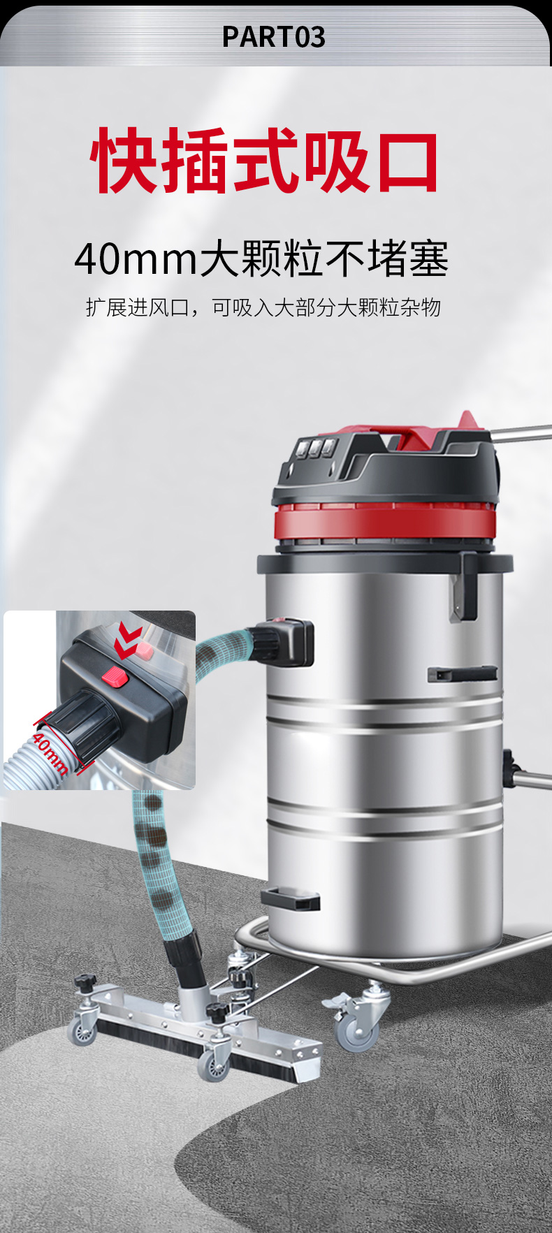 常德坦洁220V单桶不锈钢工业吸尘器X3系列
