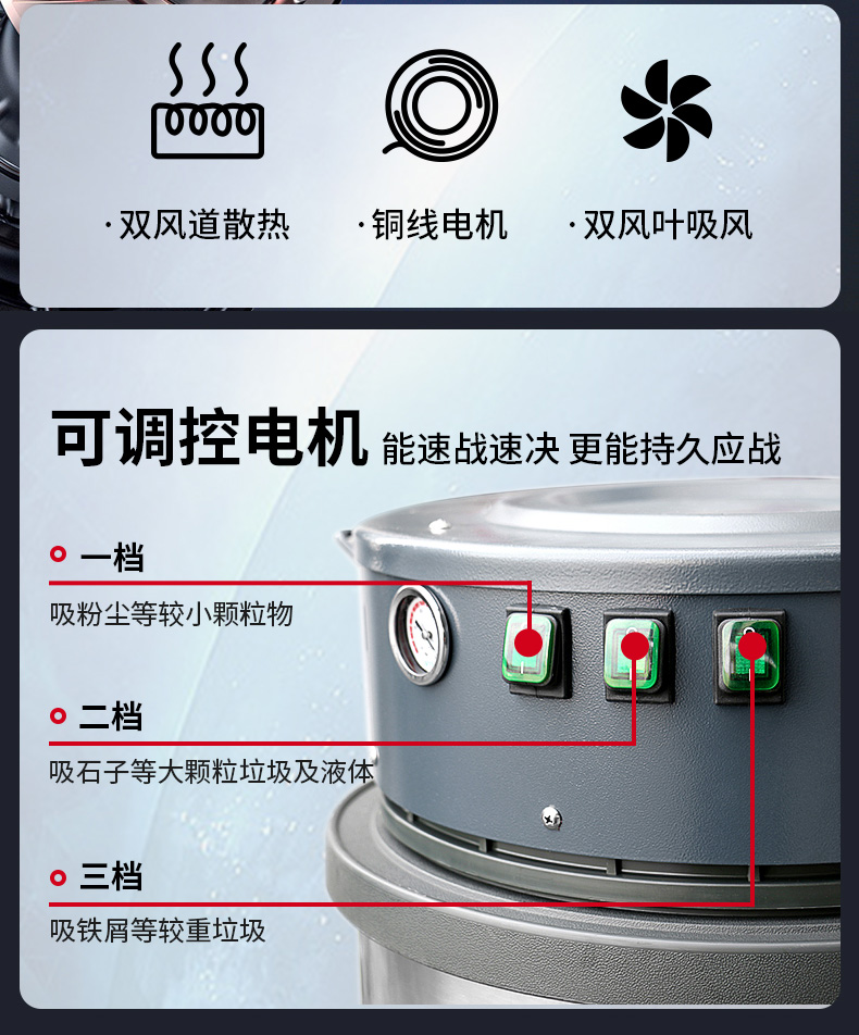 常德坦洁380V双桶不锈钢工业吸尘器X7系列